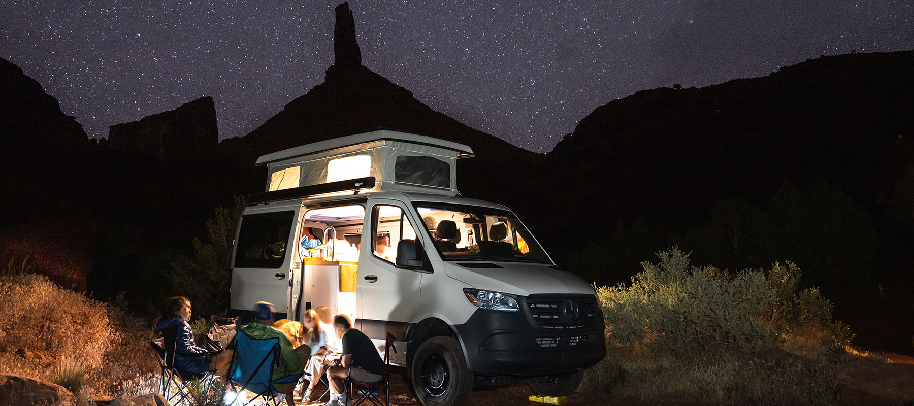 • Moterra van camping under a full moon