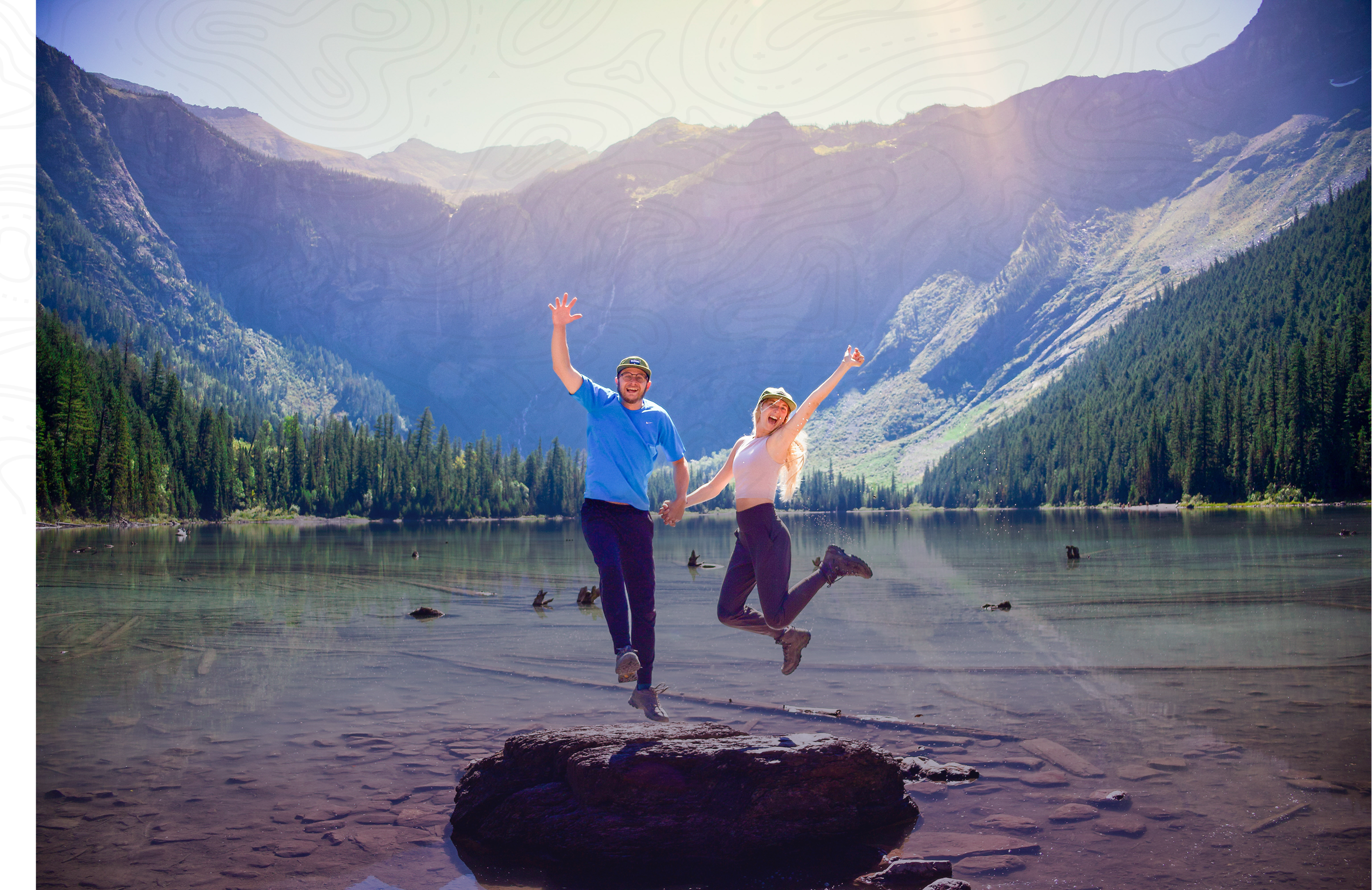 happy couple in glacier national park